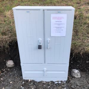 Nyt el-skab som er placeret ved skrænten over for Ny Asien. Denne eltavle indeholder automatsikringer for sydarealet.